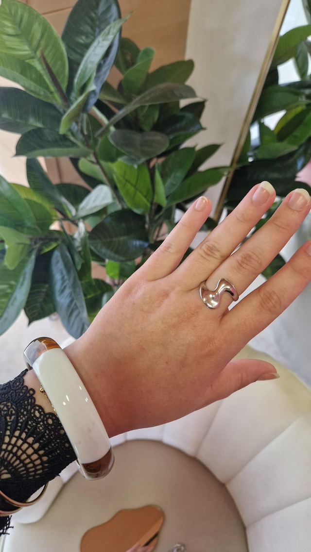 bague argentée femme, bague ondulation acier inoxydable, bague vague argent tendance, bague ajustable moderne, bijou minimaliste chic femme, Bague ondulé moderne en acier inoxydable. Ajustable.