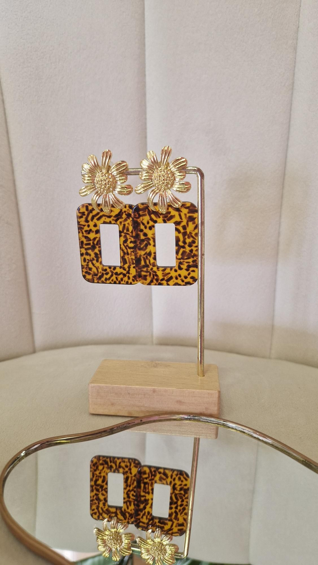Un modèle à la fois féminin et original. La fleur dorée en acier inoxydable illumine le visage, tandis que la pampille rectangulaire effet écaille apporte une touche moderne et sophistiquée. Un bijou parfait pour donner du style à vos tenues quotidiennes comme à vos soirées.