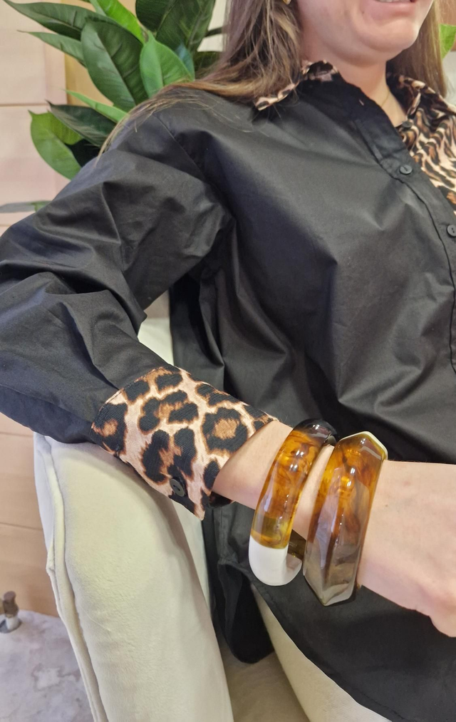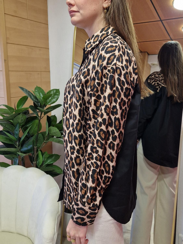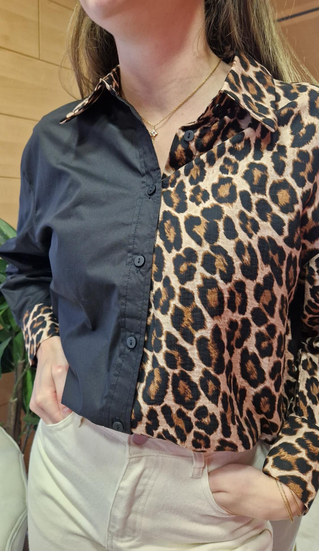Affirme ton style avec la chemise Léo, une pièce forte qui ne passe jamais inaperçue. Avec son design bicolore ultra-tendance mêlant noir profond et imprimé léopard sauvage, elle insuffle instantanément du caractère à n’importe quelle tenue. Chic, originale et pleine d’audace, elle deviendra vite l’alliée mode de vos looks casual ou habillés.