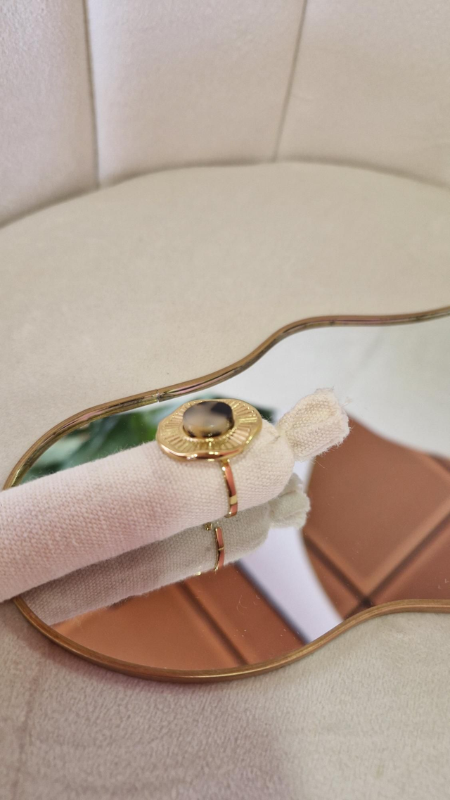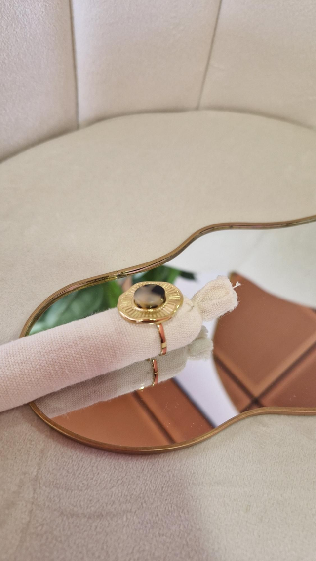 bague dorée femme, bague ajustable, bague pierre naturelle acier inoxydable, bijou doré tendance 2025, bague résistante à l’eau, idée cadeau bijou femme, bague avec pierre marron