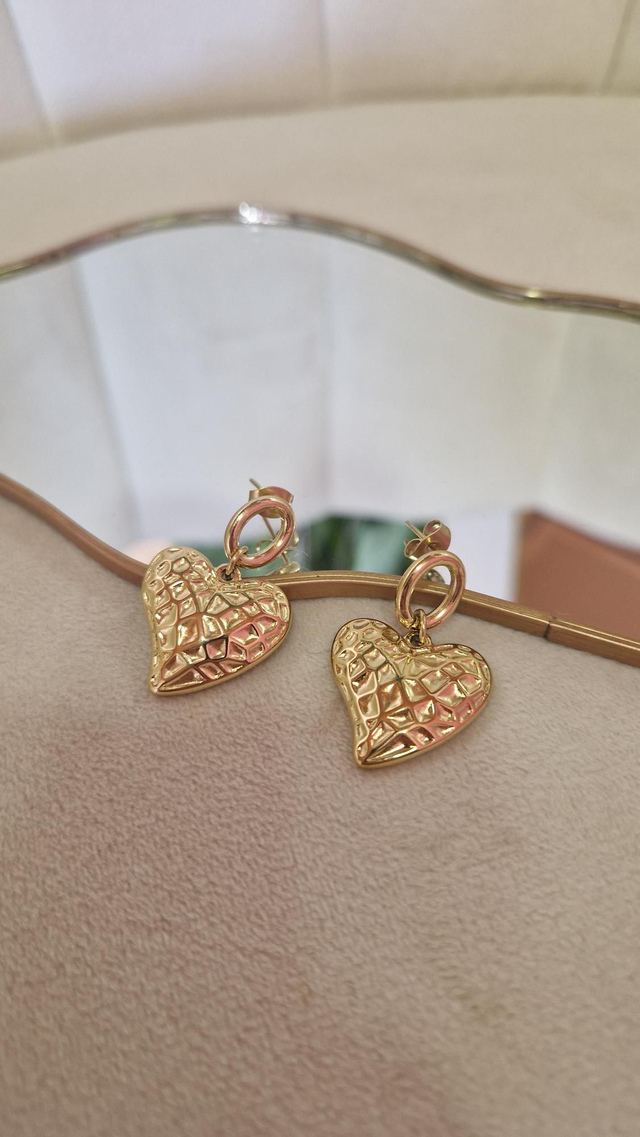 Ces boucles d’oreilles dorées en forme de cœur sont idéales pour compléter vos looks élégants et modernes.